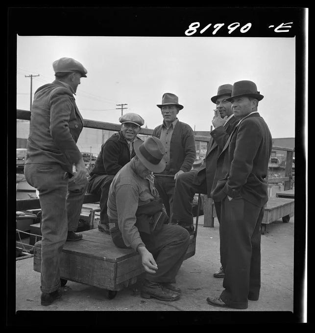 Italian fishermen gathered on Fisherman's Wharf, on December 8th, after the Japanese attack on Pearl Harbor. San Francisco, California (1941). From @USHistoryPhotos.